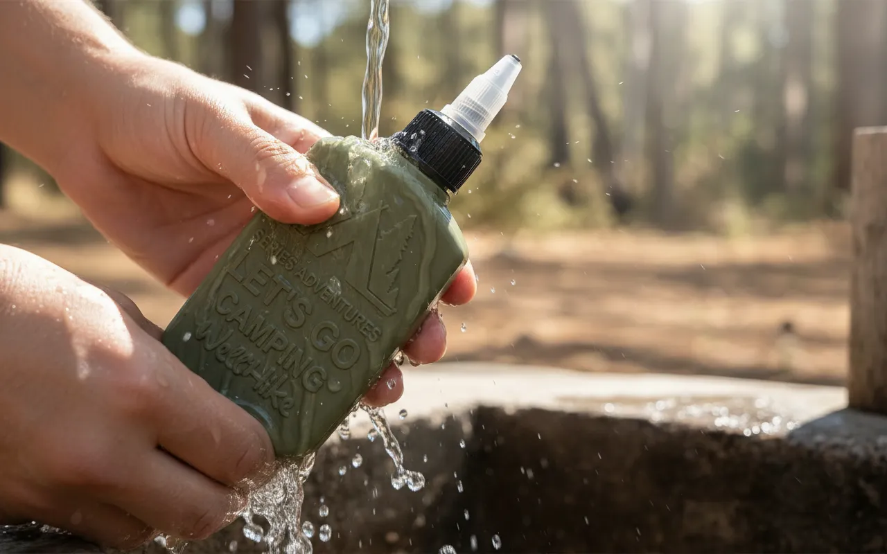 Å fylle denne flasken om og om igjen er veldig enkelt. Etter matlaging på bålet er det bare en rask skyll, så er den klar for neste tur.