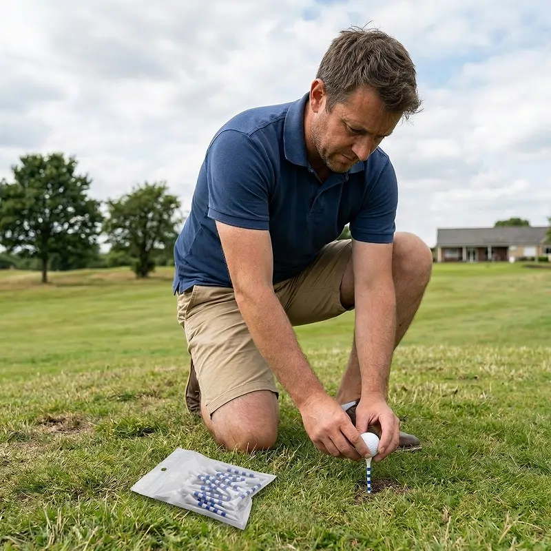 Som relativt ny golfspiller elsker jeg at disse peggene fjerner gjettingen. Jeg stiller ballen opp med stripene og vet at driveren er i samme høyde på hvert slag.