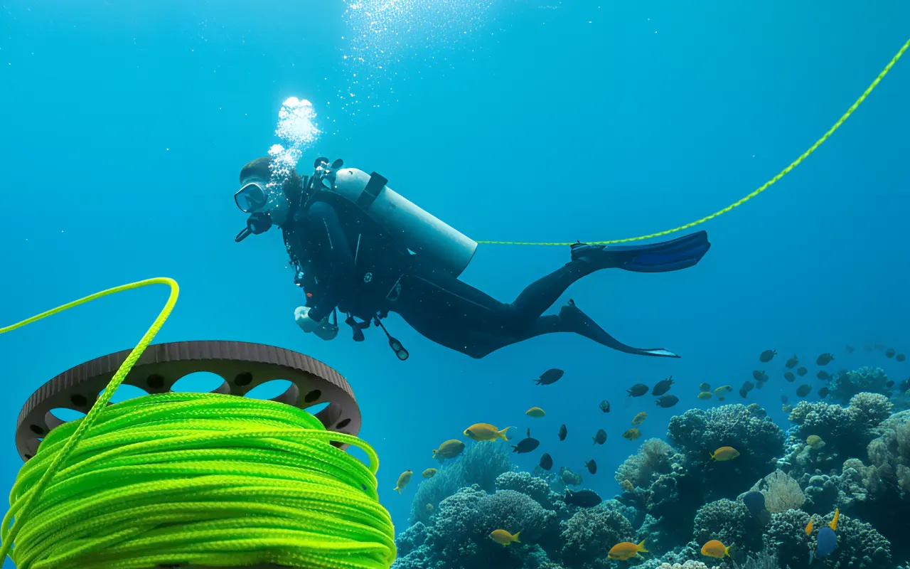Sterk oransje polyesterline skiller seg ut under alle forhold. Du finner alltid veien, selv i grumsete vann eller mørke huler.