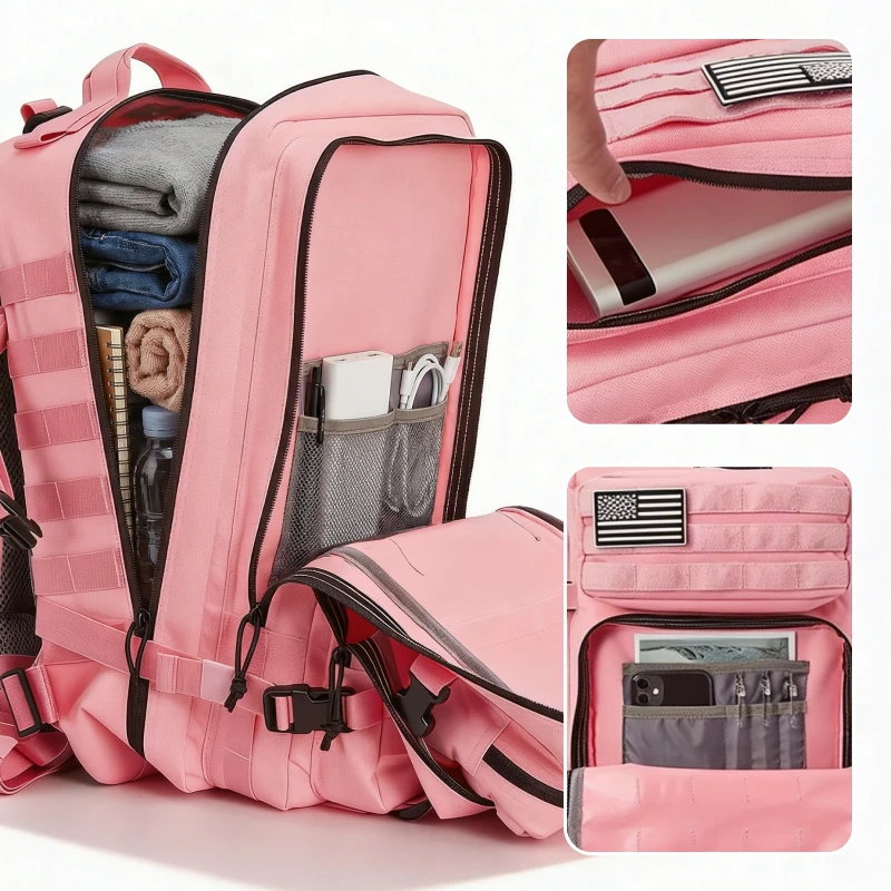 Eventyret føles lettere når alt passer perfekt inni sekken. Threo Tactical-ryggsekken tåler tunge lass uten at skuldrene verker. Hver lomme holder utstyret sikkert gjennom regn, gjørme eller steinete stier. Nyt turen utendørs med visshet om at ingenting blir etterlatt.