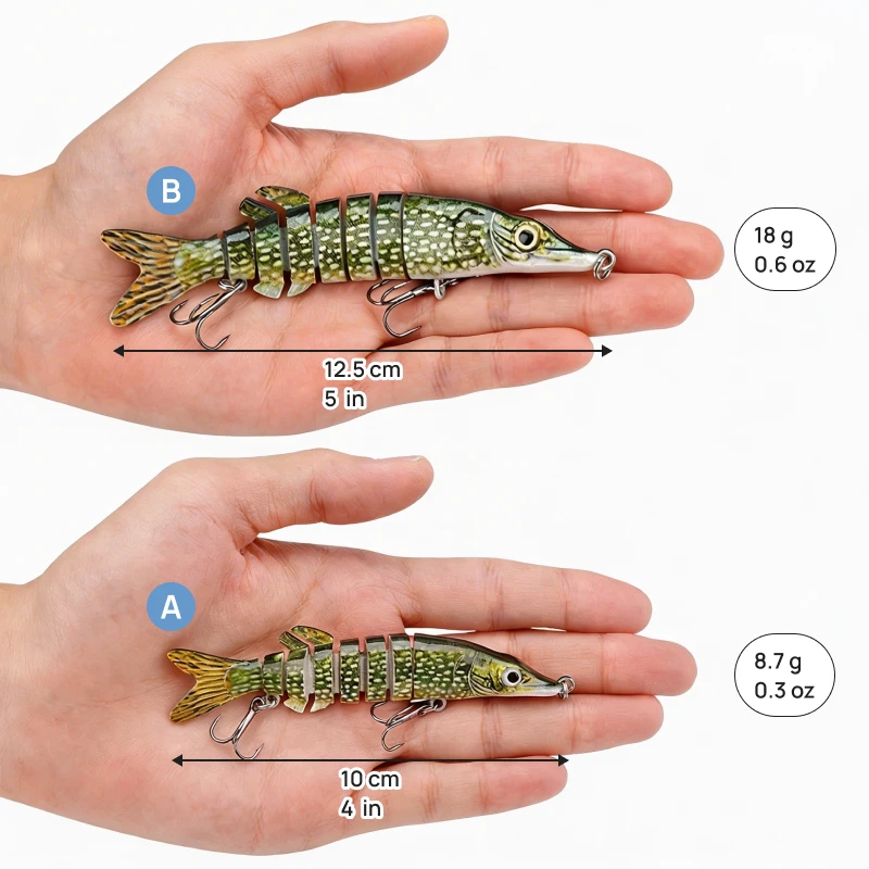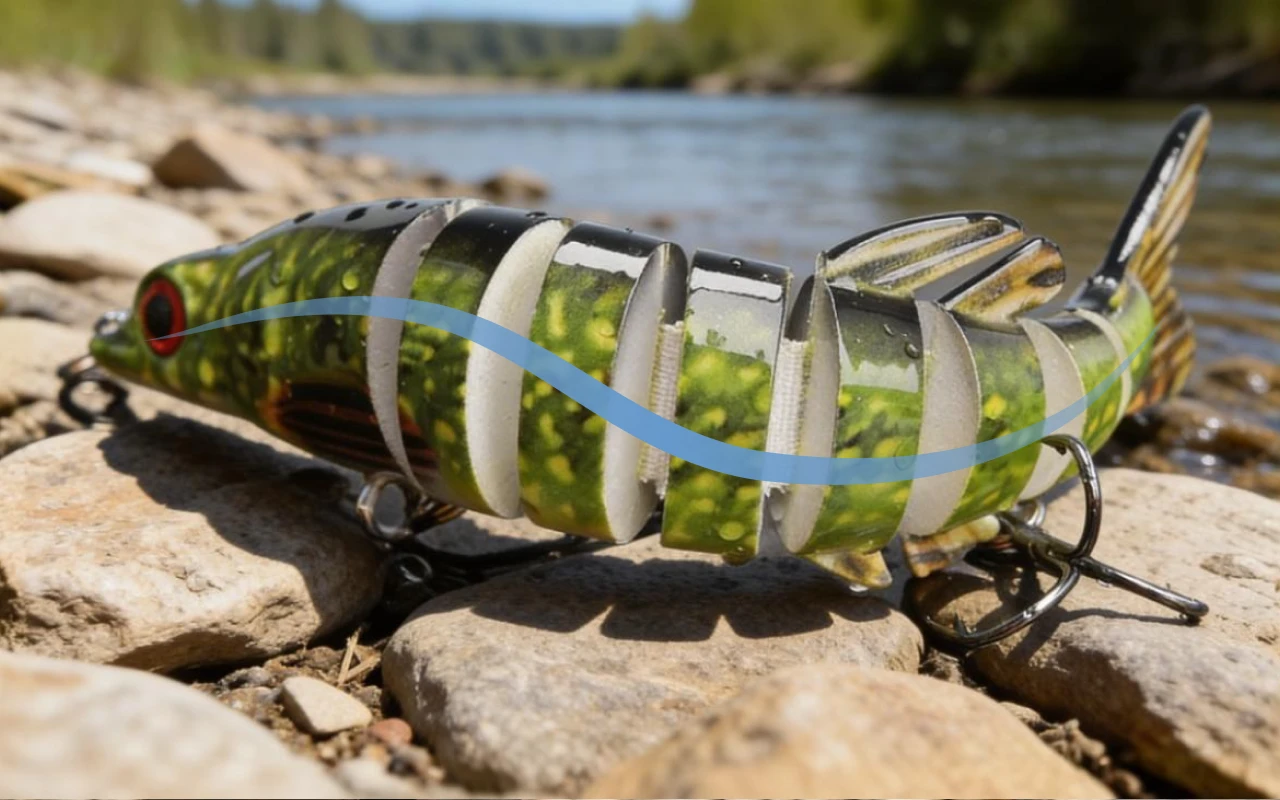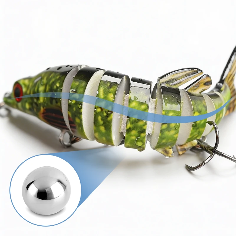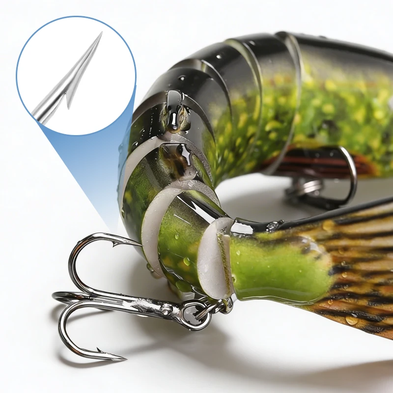 Åtte fleksible seksjoner får denne agnet til å svømme som ekte bytte. Hvert rykk frister rovdyr og gir deg bedre fangst.