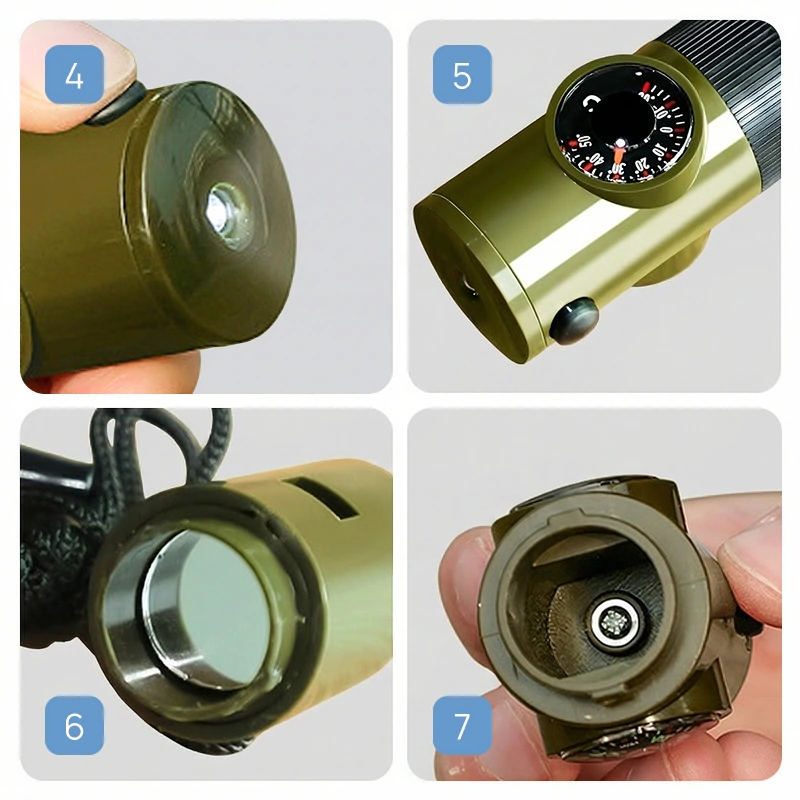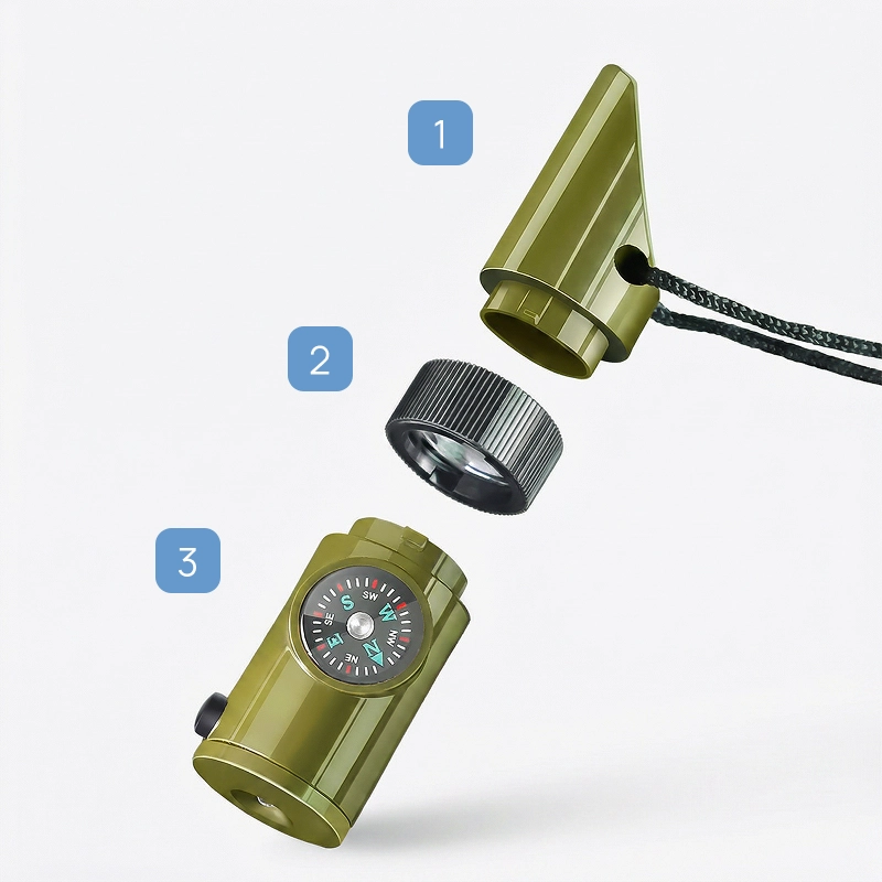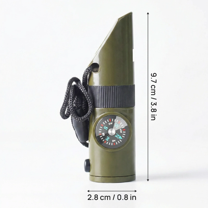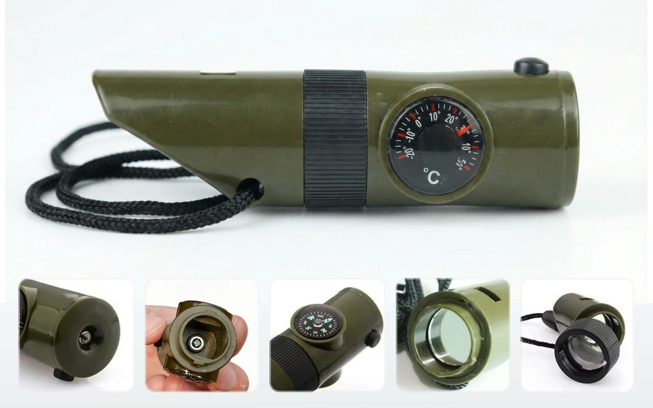 Et høyt signal, kraftig lommelykt og nyttig speil vekker rask oppmerksomhet. Oppbevar små nødvendigheter trygt, klare når du trenger dem.