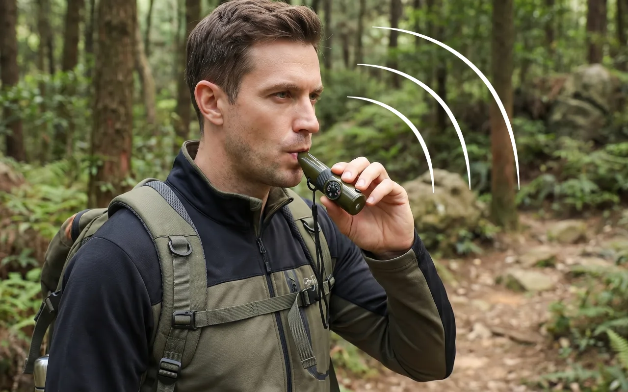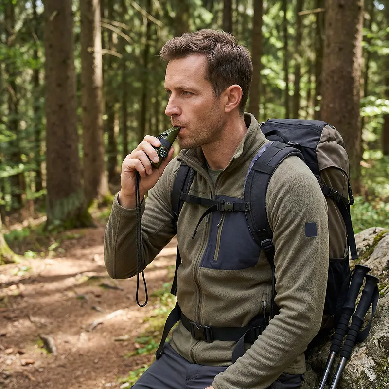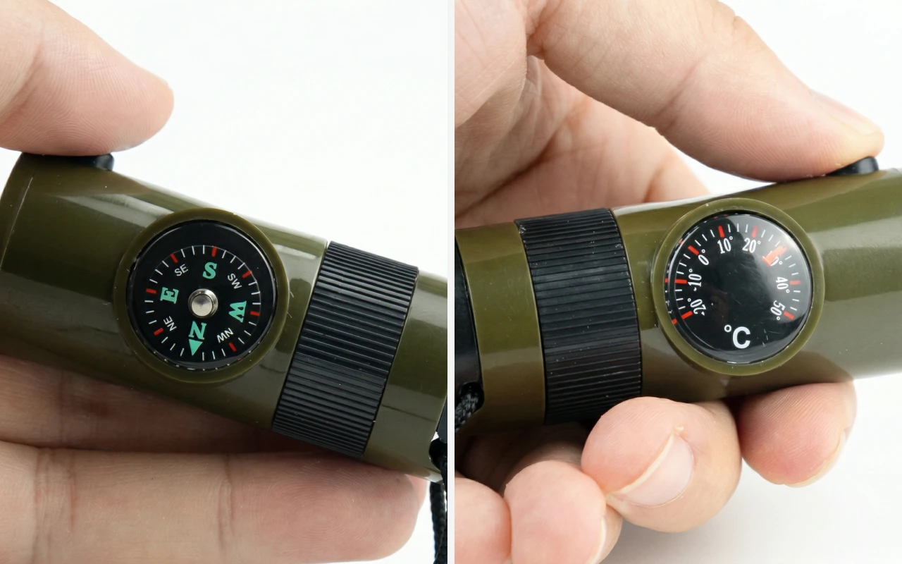 Vi la denne fløyten i familiens campingboks. Barna lærte kompasset lett, og vi øvde på å bruke speil og lyd til late-som-redningsøvelser.