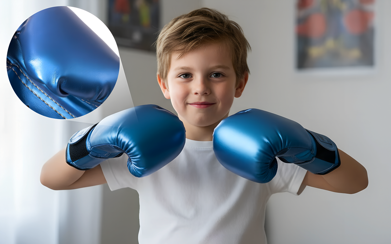 Tykk polstring dekker knokene og håndleddene sikkert. Hvert slag dempes for å redusere risikoen for skade.