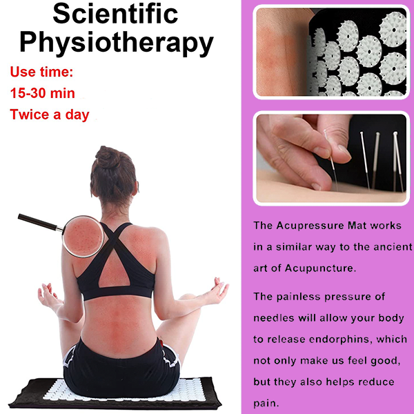 THREO Akupressurmatte stimulerer trykkpunktene på føttene, hendene og ryggen med sitt 3D-design. Den er ypperlig for å roe nervene, frigjøre stress og styrke kroppens immunforsvar. Bruk av vår akupressurmatte anbefales spesielt for de som har en stillesittende livsstil, sliter med søvnløshet, har høyt blodtrykk eller diabetes. I tillegg lindrer den smerter i nakke, skuldre og ryggmuskler ved å målrette spesifikke punkter på ryggraden. Vår matte forbedrer også blodsirkulasjonen takket være sitt unike design med hundrevis av diamantformede knotter som stimulerer flere områder av kroppen samtidig.