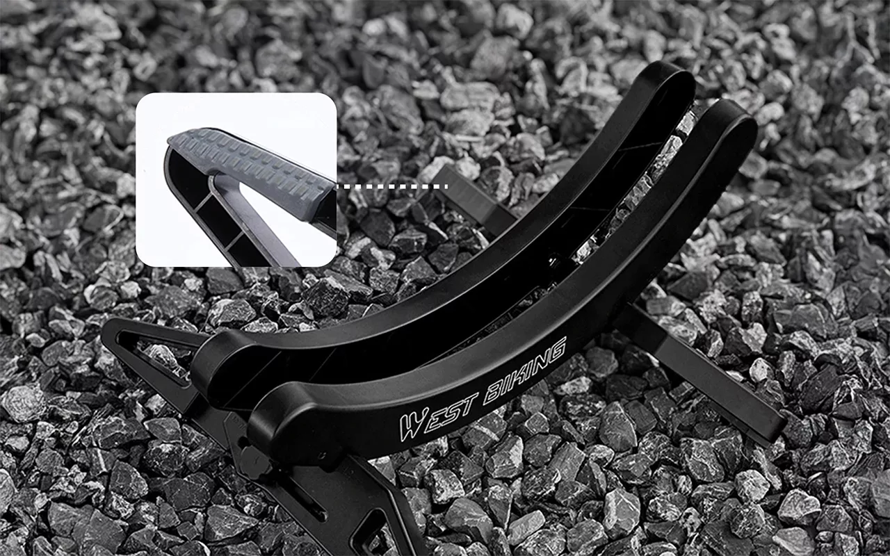Designet forhindrer glidning på glatte eller ujevne flater. Sykkelen din holder seg på plass selv på fliser eller betong. Dette reduserer risikoen for fall og riper.