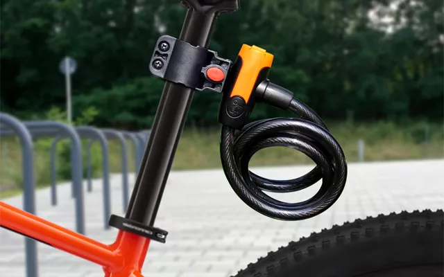 Den kompakte holderen gir praktisk oppbevaring. Fest den til sykkelen, så har du alltid låsen tilgjengelig når du trenger den.