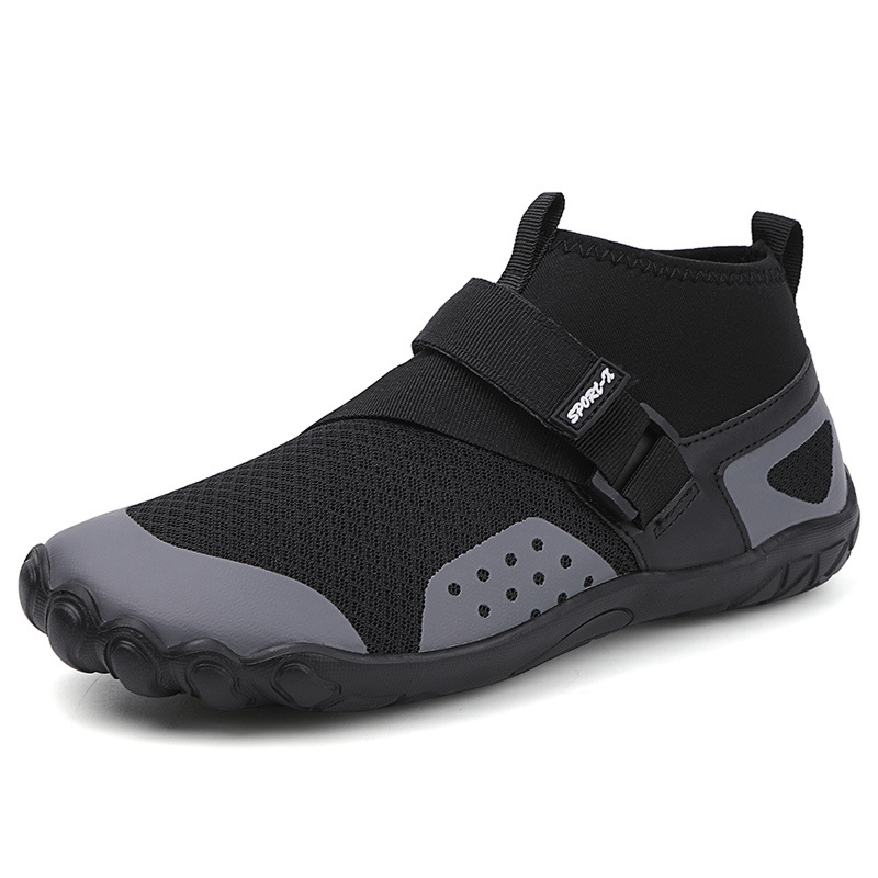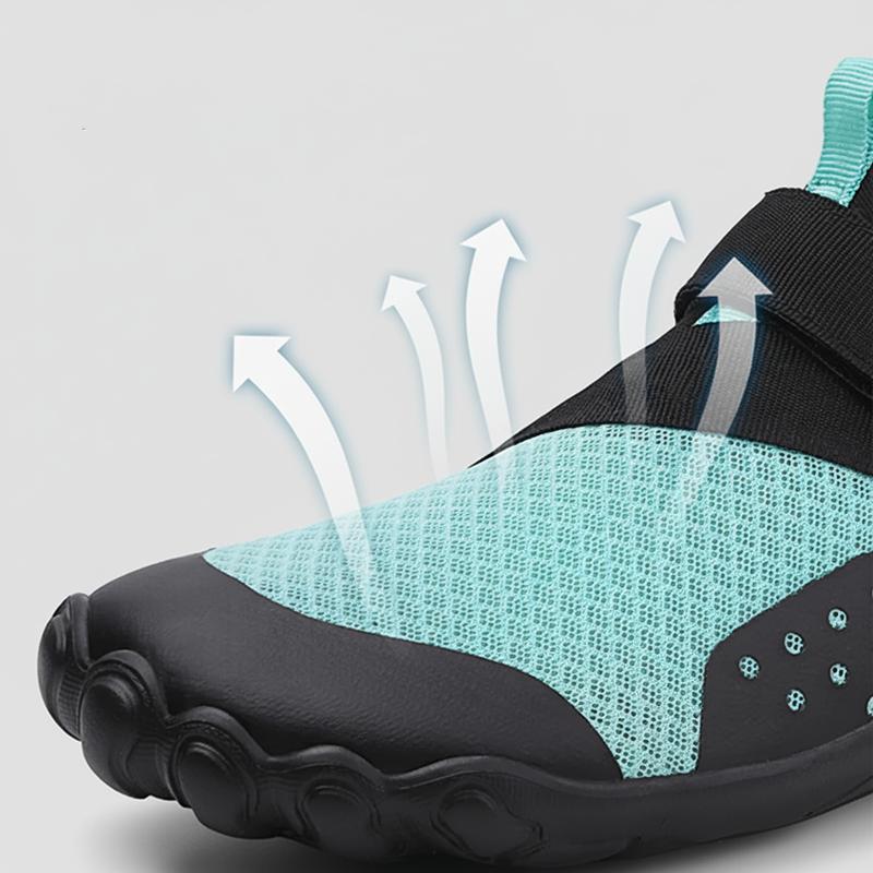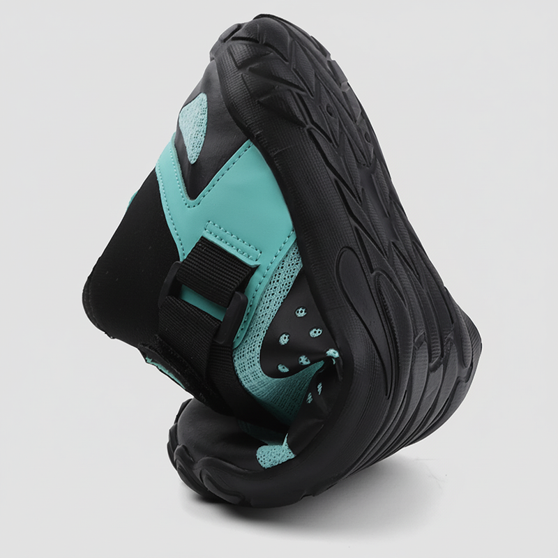 Nyt trygge steg både på våte steiner og varm sand. Threo barefoot sko hjelper føttene å få godt grep på underlaget og beskytter mot skarpe gjenstander. Ingen flere glatte sko eller såre hæler på utendørsturene dine. Hold tærne beskyttet enten du går tur, svømmer eller slapper av ved sjøen.