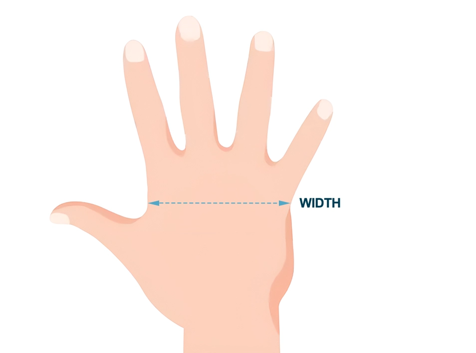 - 1. Strekk målebåndet over den bredeste delen av håndflaten din.