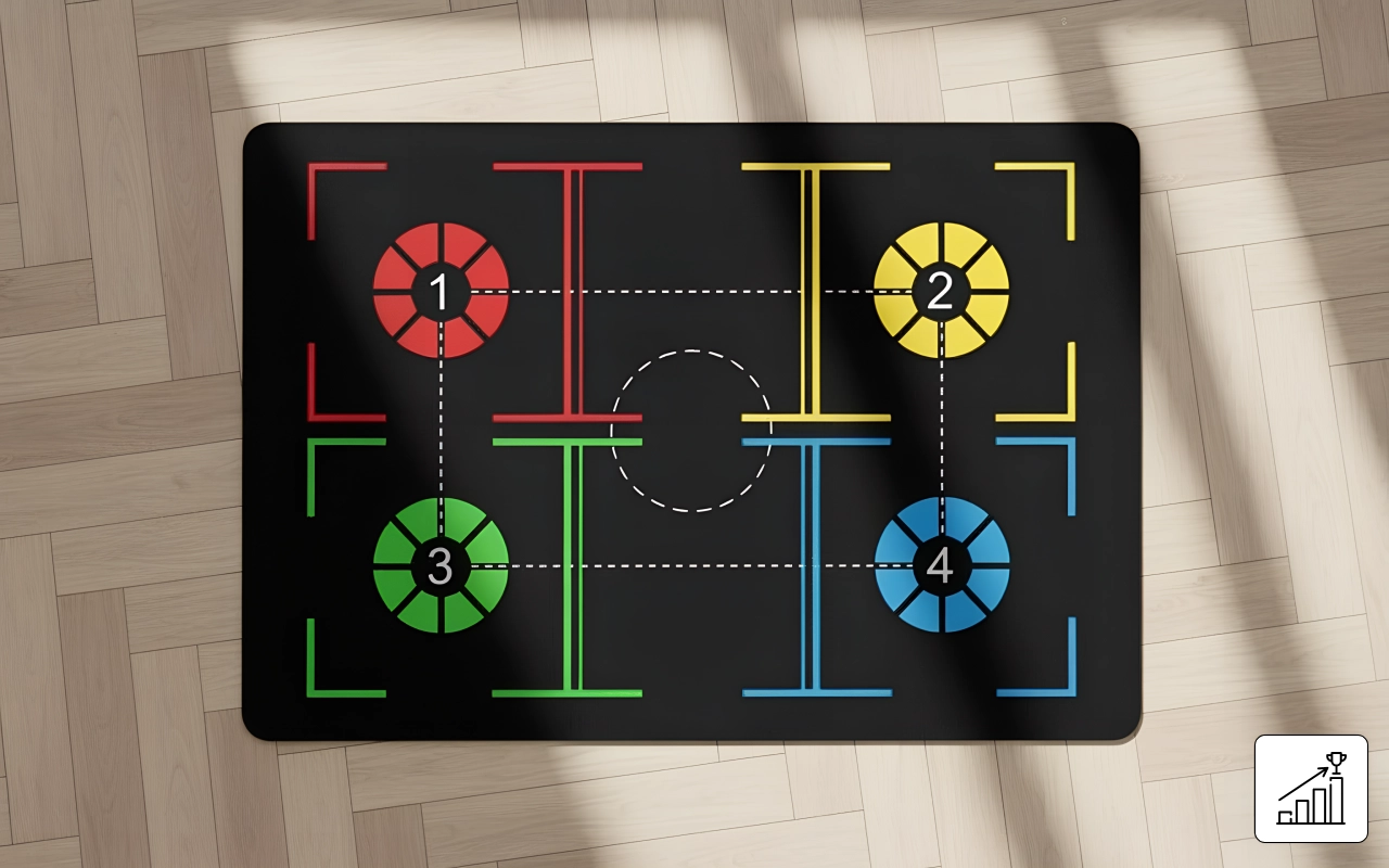 Threo-mattens tydelige soner hjelper deg med å veilede fotarbeidet hver gang. Ferdighetene dine vil forbedres raskere når du trener målrettede øvelser daglig.