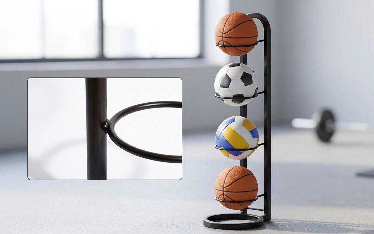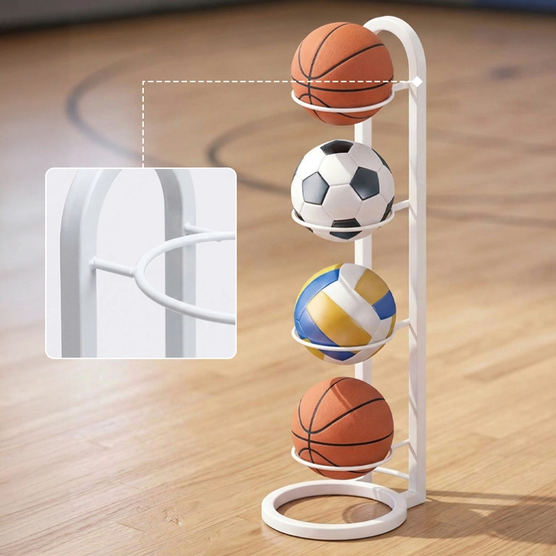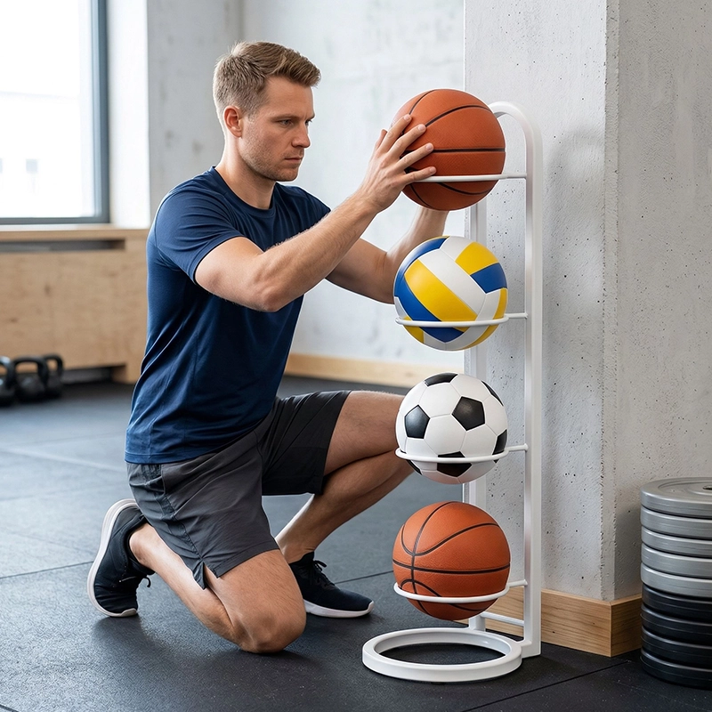 Rotete sportsutstyr forsvinner raskt med dette smarte stativet. Solid konstruksjon i karbonstål tåler daglig bruk. Den enkle stilen passer sømløst inn på soverom, i stuer eller i treningsrom. Ingen skruer er nødvendig, så hvem som helst kan sette det opp raskt. Nyt mer plass samtidig som alle baller er lett tilgjengelige.