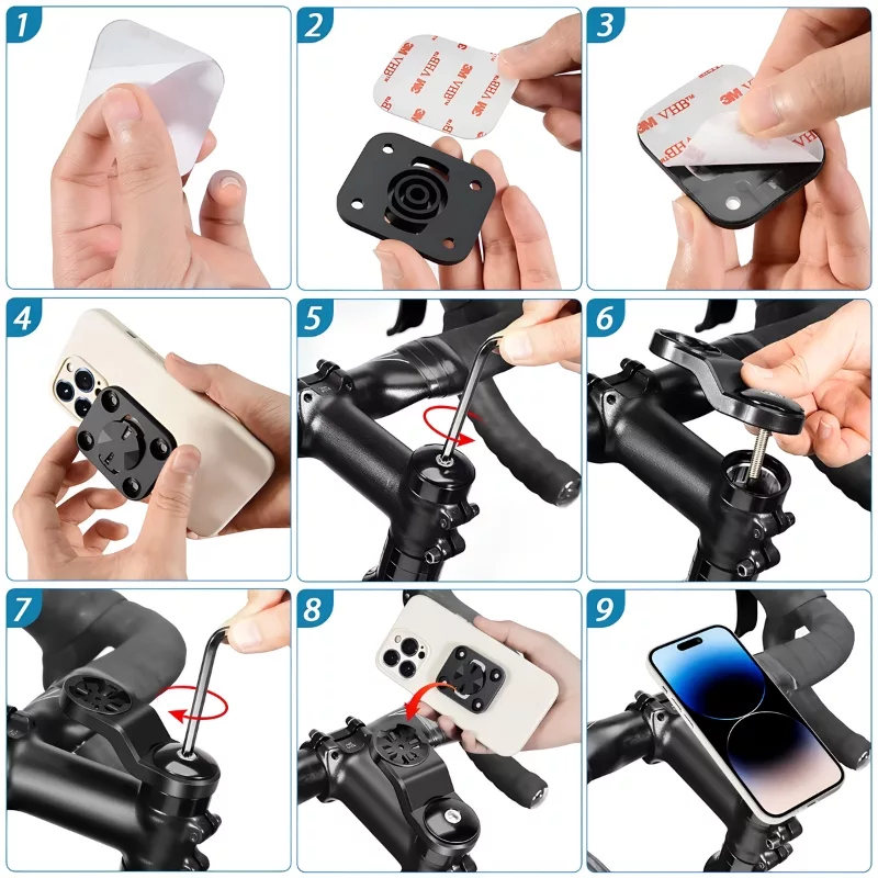 Du kan montere Threo telefonholderen på sekunder uten verktøy. Du er klar for tur på et øyeblikk.