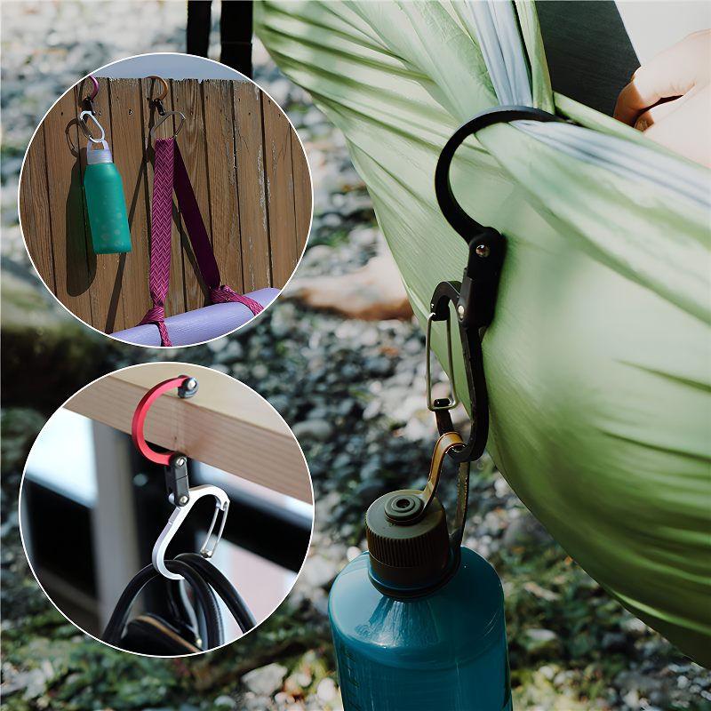 Threo Camping Karabinkrok gjør det enkelt å pakke og bære med seg utstyr. Den smarte roterende kroken fester det viktigste på bord, traller eller ryggsekker. Sterk aluminium holder tunge lass trygt på alle eventyr.
