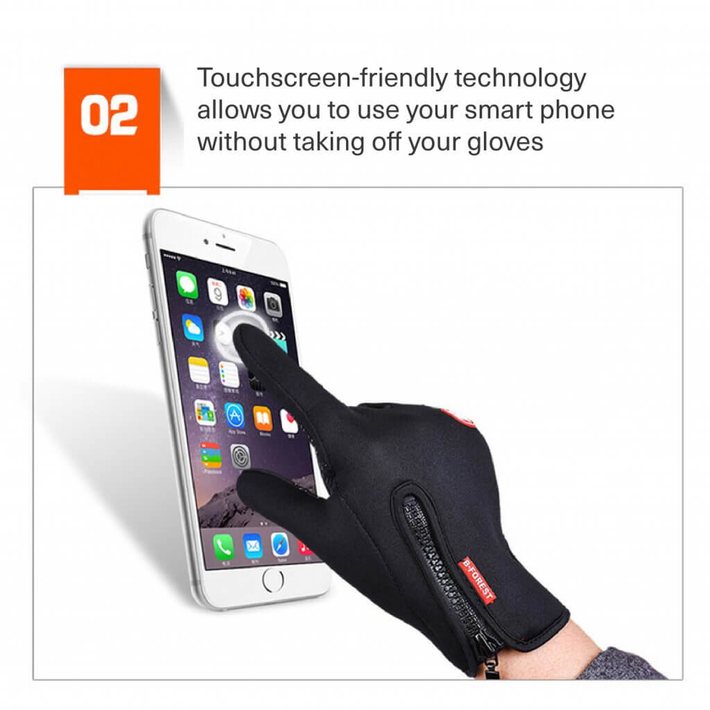 ✔️ BERØRINGSSKJERMTEKNOLOGIFingertuppene er laget av høykvalitets ledende bølget PU, som lar deg bruke smarttelefoner og berøringsskjermenheter fritt uten å ta av hanskene under utendørs sport og andre vinteraktiviteter.