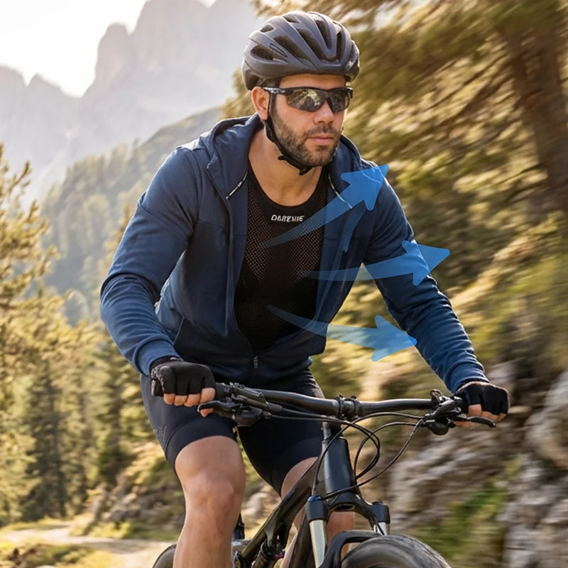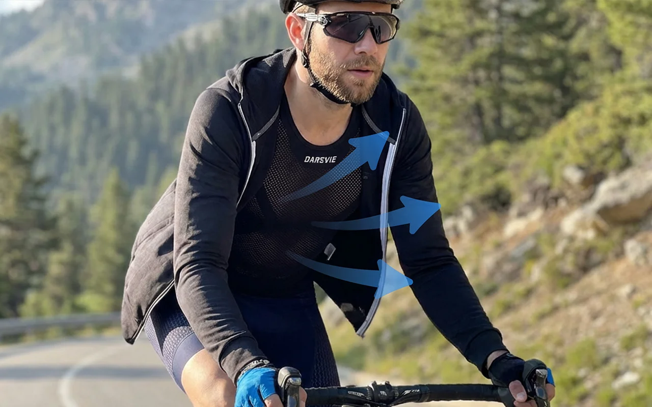 Kjøpte denne til broren min som sykler hver dag. Han sier at den ermeløse fasongen føles fri, stoffet transporterer fukt raskt, og passformen holder seg på plass.