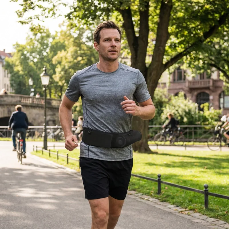 Jeg bruker dette på hver løpetur nå. Det sitter fint rundt livet, holder tingene mine trygge, og det myke materialet føles fantastisk selv over lange avstander.