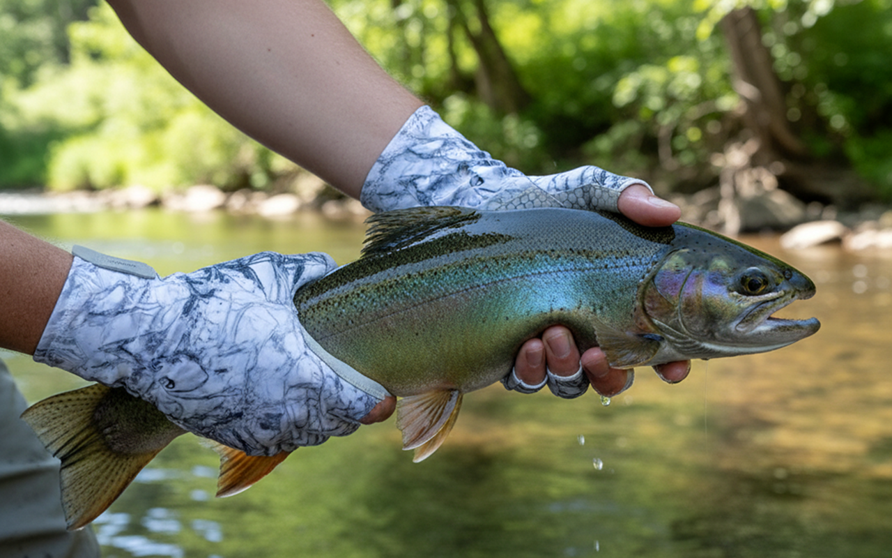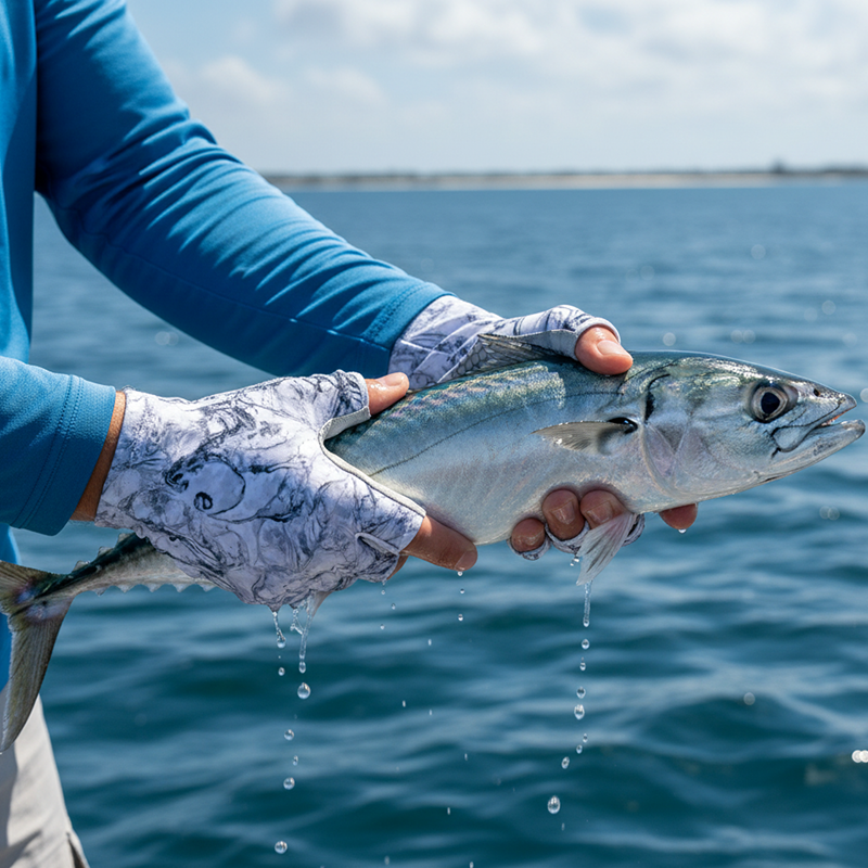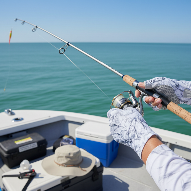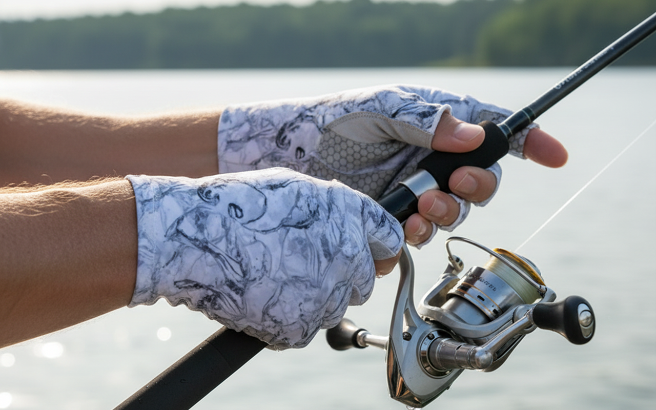 Prøvde disse hanskene på fisketur forrige helg. Stanga mi skled ikke én gang! Ingen solbrenthet heller. De passer godt og jeg kunne knyte krokene lett.