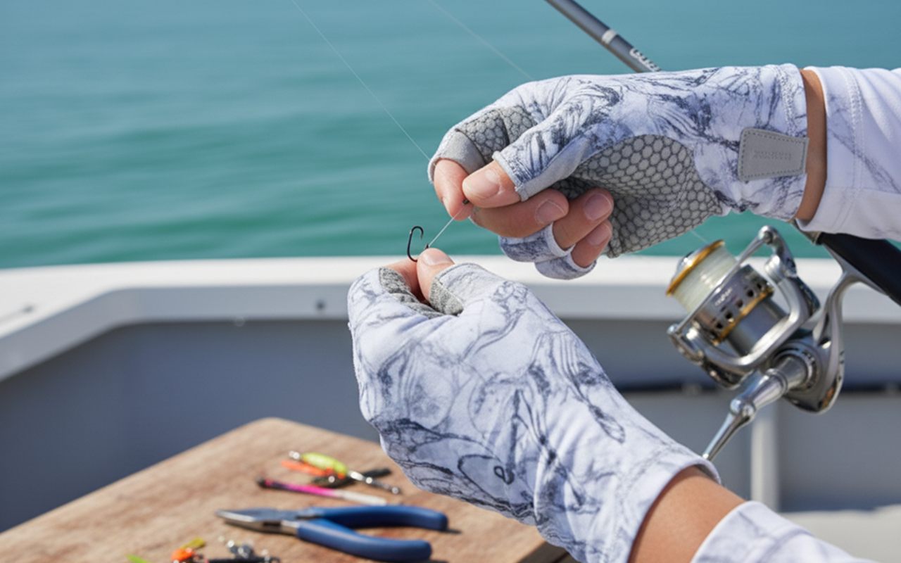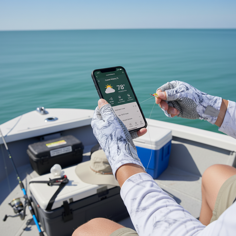 Jeg kan knyte fiskeknuter superraskt nå siden fingrene mine er frie. Elsker hvor lette de er—jeg bruker til og med mobilen med dem på. De beste hanskene så langt!