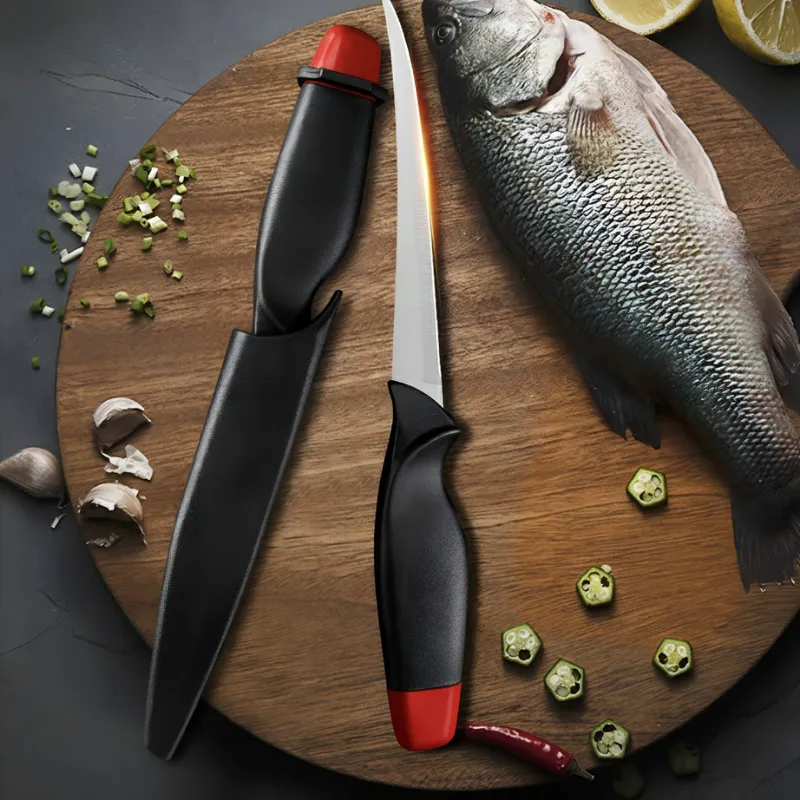Filetering av laks hjemme var alltid vanskelig, men denne kniven er lett og behagelig. Dekselet gir trygghet når jeg oppbevarer den sammen med utstyret mitt.
