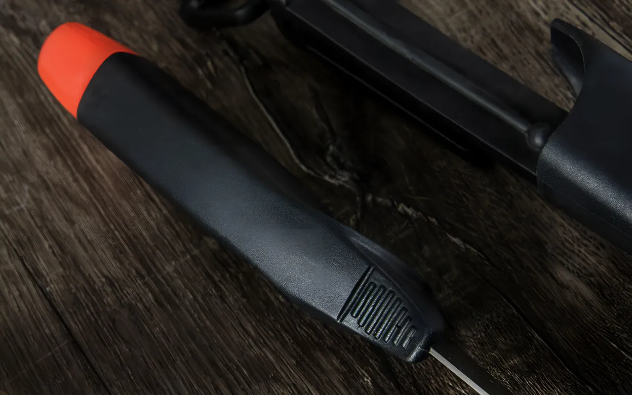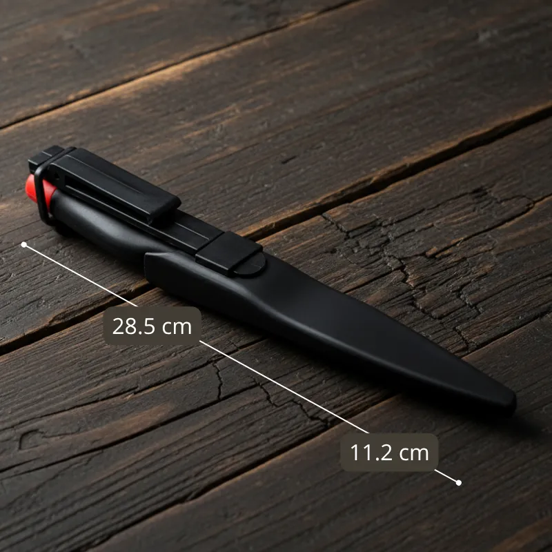 Et solid deksel beskytter hendene mot uhell og skader. Bær kniven trygt med visshet om at bladet forblir sikkert når det er pakket bort.
