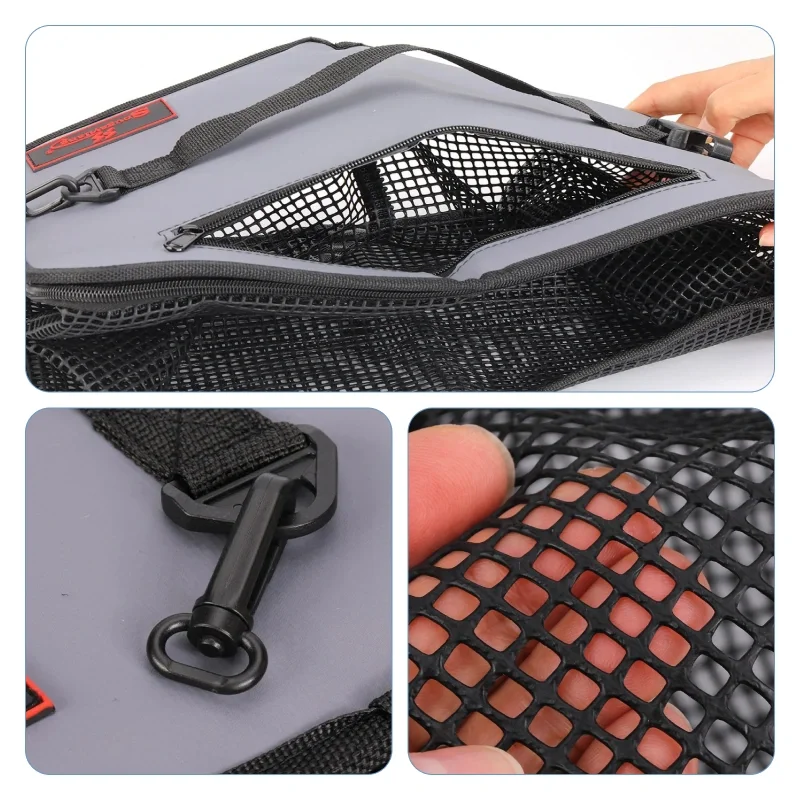 Fiskedagene føles enkle med Threo fiskekurv. Du kan brette den flat og bære den uten problemer. Sterk netting holder alt sikkert mens du slapper av. Nyt mer tid ved vannet uten å bekymre deg for fangsten.