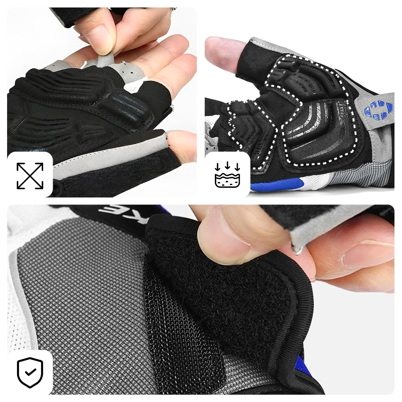 Med hjelp av borrelås rundt håndleddet kan du enkelt justere strammingen på hanskene for å sikre best mulig passform. Når turen er over, gjør avtrekkslappene det enkelt og behagelig å ta av hanskene. Det enkle, men effektive designet er perfekt for langdistansesykling, treningsøkter, fjellklatring, båtturer, fotturer, kajakkpadling og andre utendørsaktiviteter. Disse fingerløse hanskene er egnet for sommer, vår og høst.