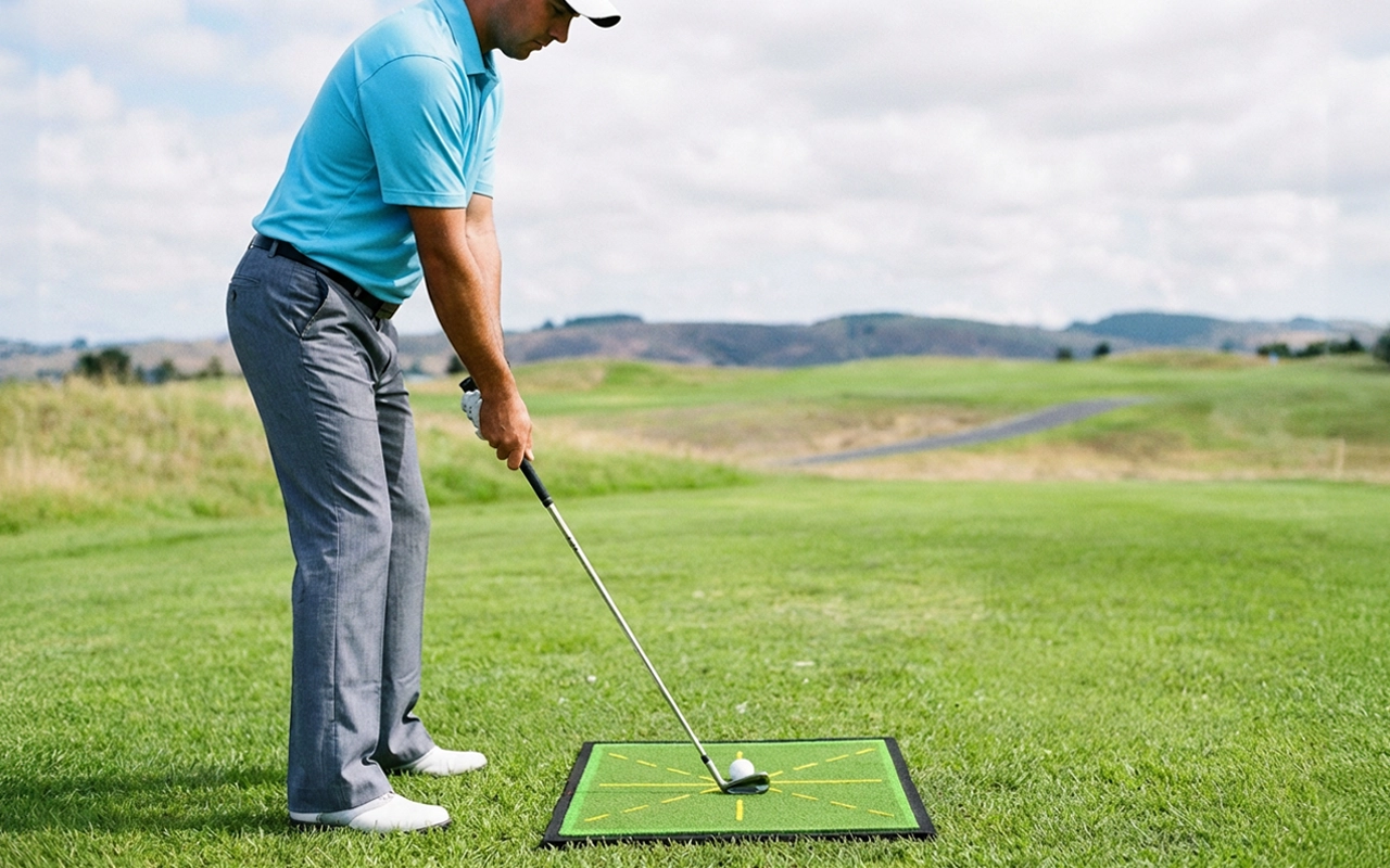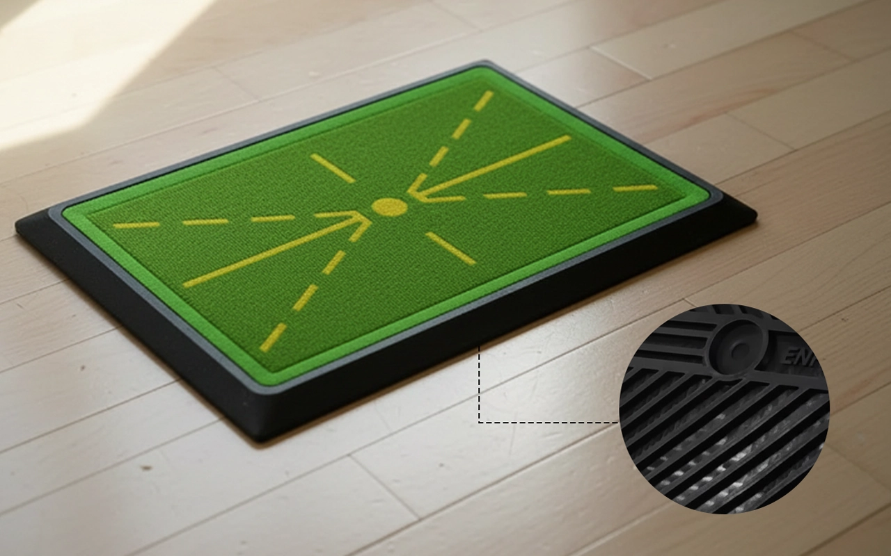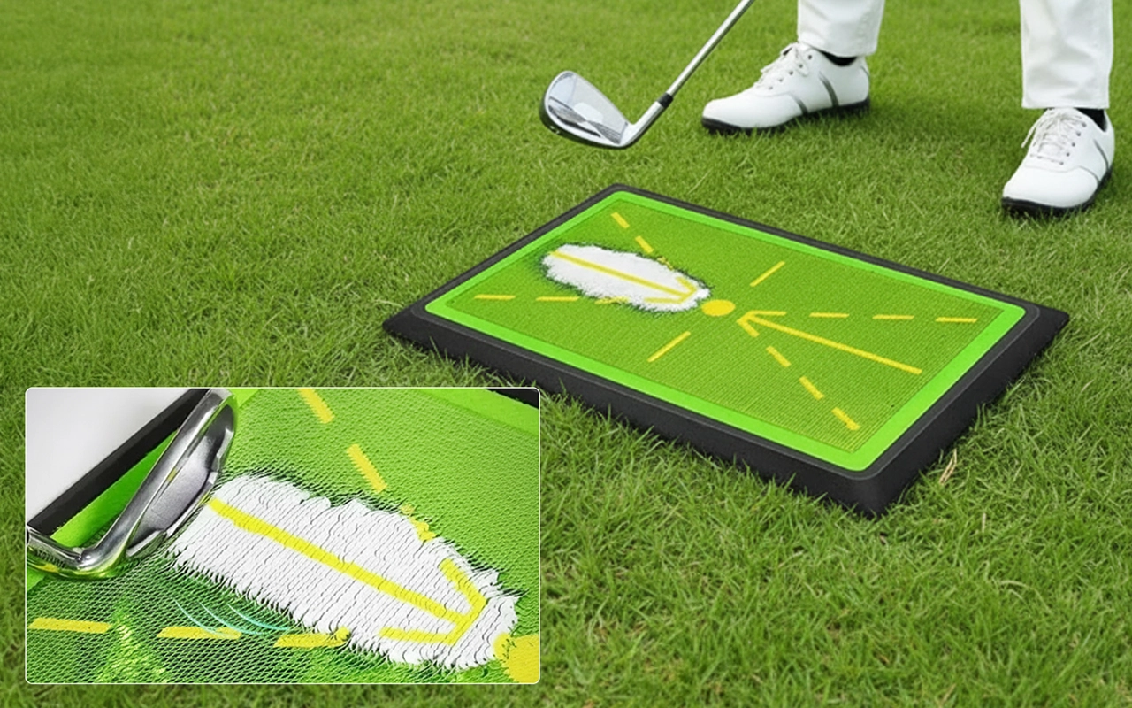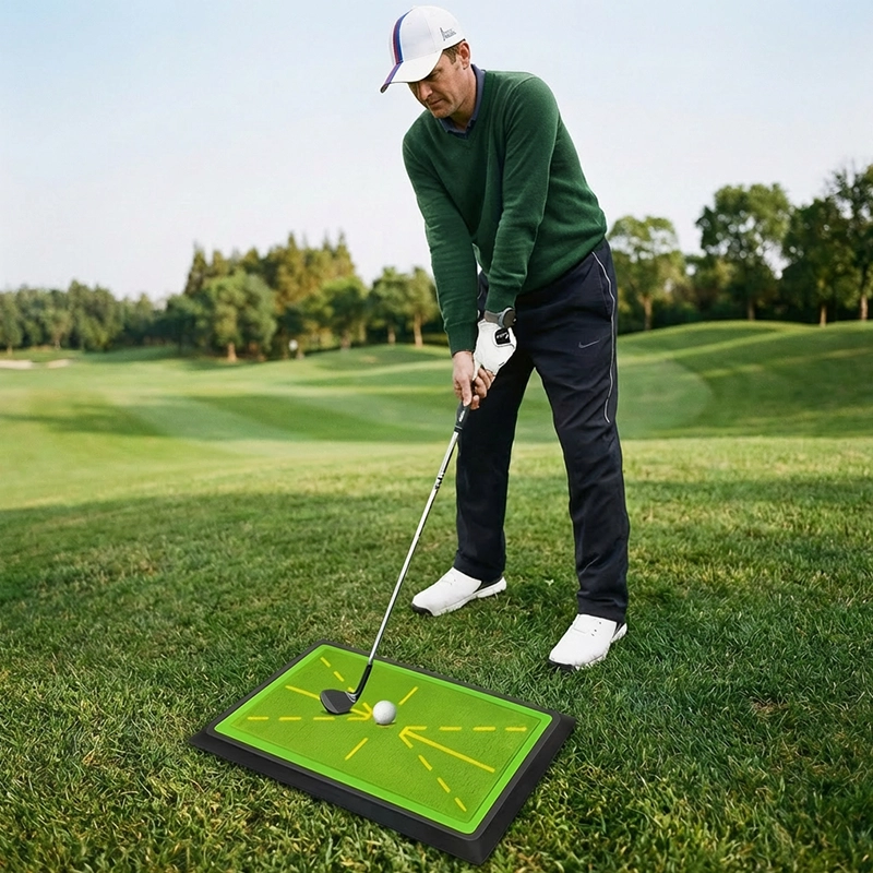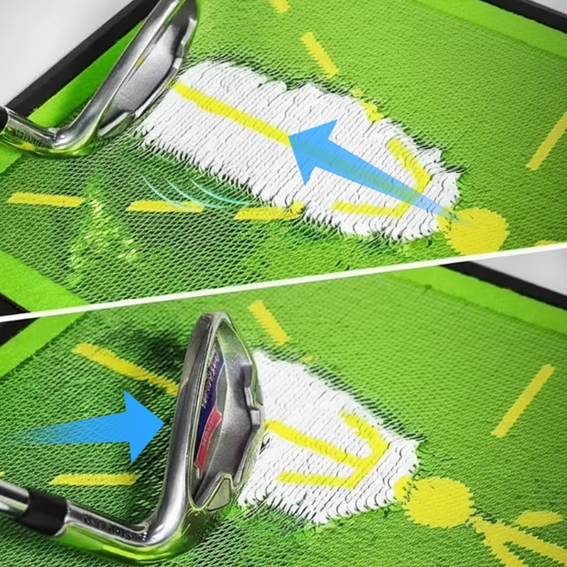 Vår treningsmatte viser tydelig treffmerker, som hjelper deg å identifisere og rette opp vanlige svingfeil.