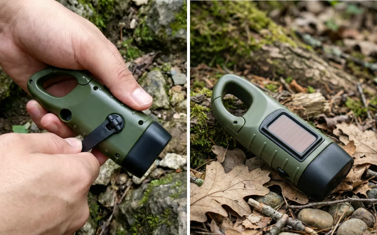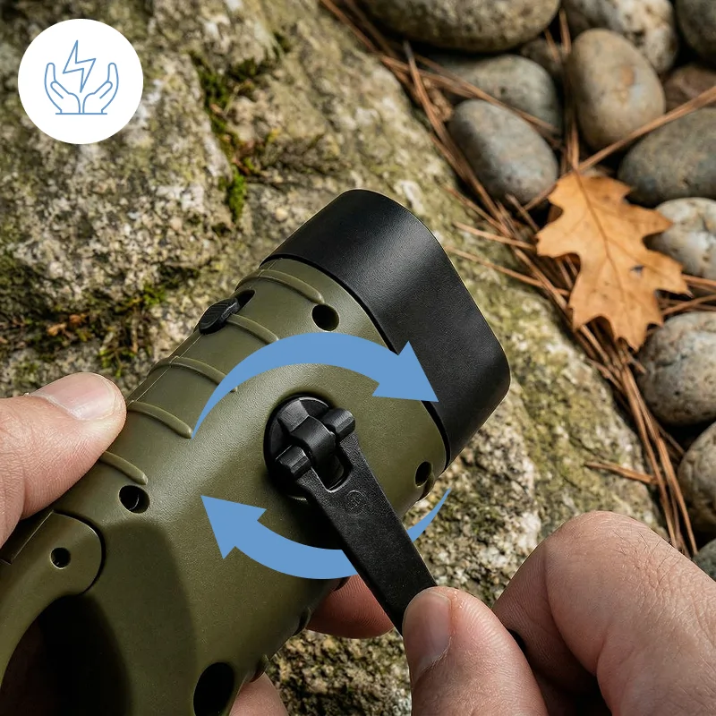 Gi strøm til Threo-lommelykten med sollys eller ved å dreie på sveiven. Ingen nettelektrisitet er nødvendig, så du kan alltid skape umiddelbart lys.