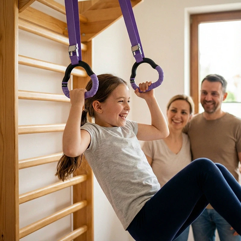 Datteren min bruker ringene hele tiden før middag! Hun øver på sving og det hjelper henne å holde fokus på skolen også. Enkle å sette opp på rommet hennes.