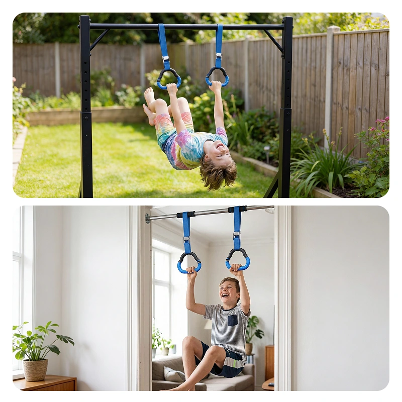 Utrolig bra til lek etter skolen! Min lillebror og jeg konkurrerer om hvem som klarer flest pull-ups. De myke håndtakene er gode for hendene våre.