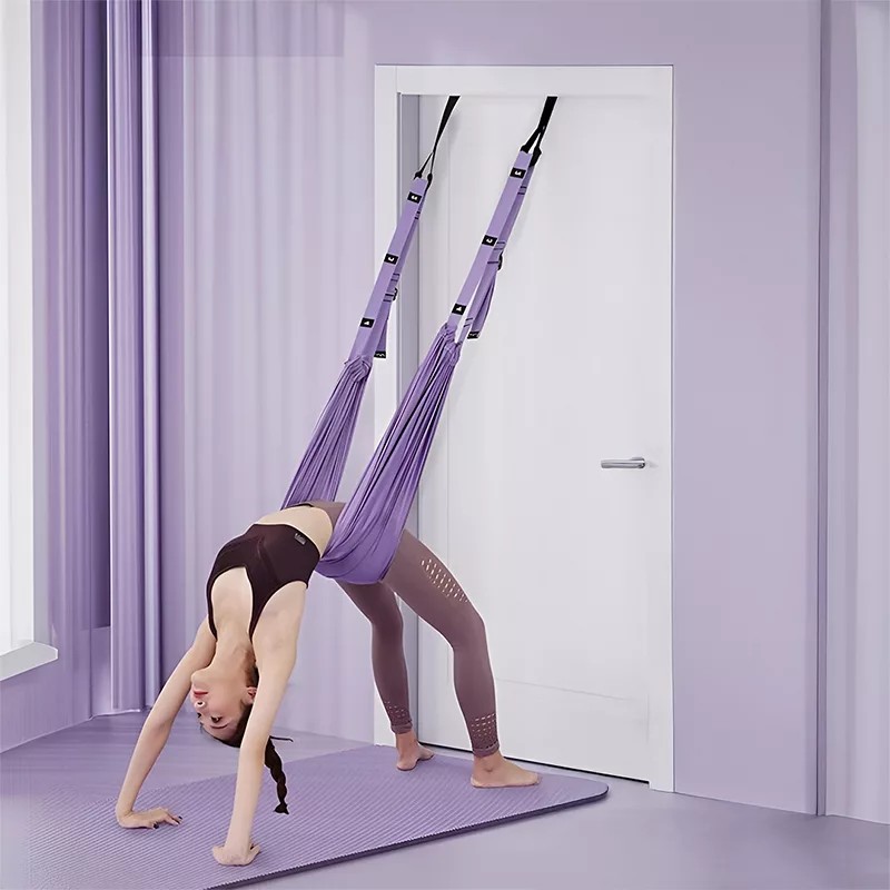 Dette yogatauet passer perfekt i min lille leilighet. Jeg fester det til døra og kommer rett i gang med tøyerutinen uten stress.