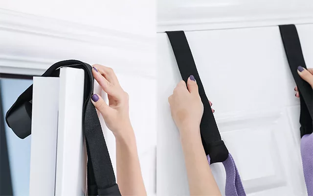 Dette yogatauet kan enkelt monteres på de fleste standardrammer uten verktøy. Gjør ethvert rom om til et treningsrom.