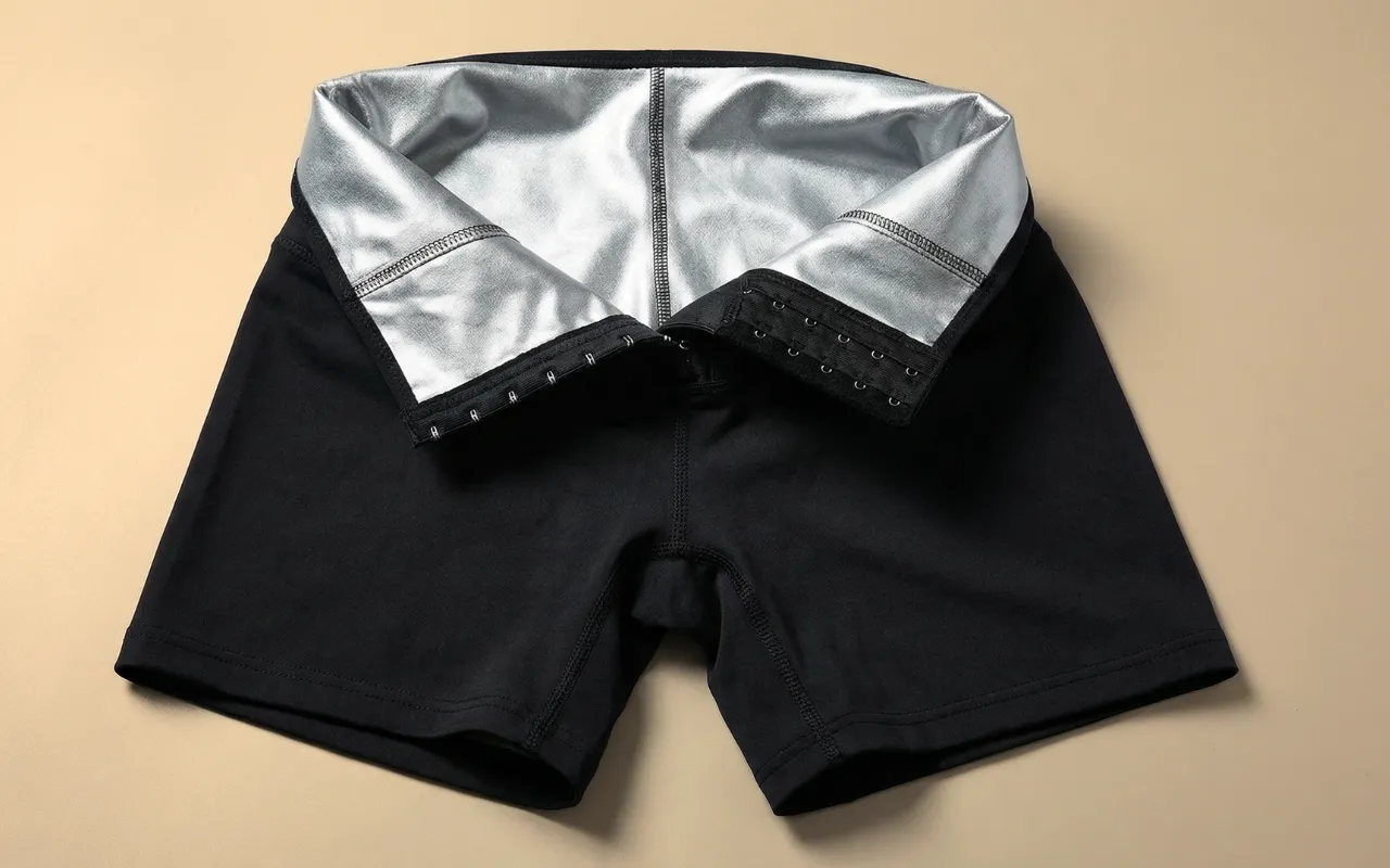 Disse sauna-shortsene holdt meg tørr under skolelevering og ærender. De sitter godt i midjen men føles ikke stramme.