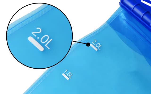 Med volummerkene kan du enkelt holde oversikt over hvor mye vann du har drukket og hvor mye som er igjen, slik at du holder deg tilstrekkelig hydrert gjennom hele utendørsaktiviteten.