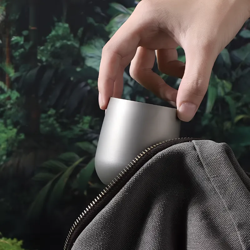 Tok med titan-koppen til parken. Selv etter å ha løpt rundt var kakaoen min fortsatt varm. Veldig enkel å bære med seg.