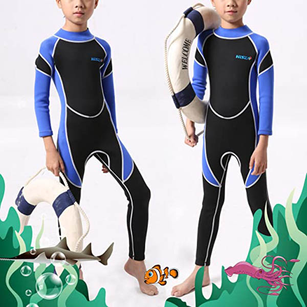 2,5 mm premium neopren THREO våtdrakt er spesielt designet for barn. Den hjelper til med å holde dem varme og beskytte mot UV-stråler. Våtdrakten bidrar til å minimere kontakt med «ting som stikker», som sjølus, maneter osv. Med god ventilasjon er dykkerdrakten komfortabel å ha på og gir god bevegelsesfrihet.