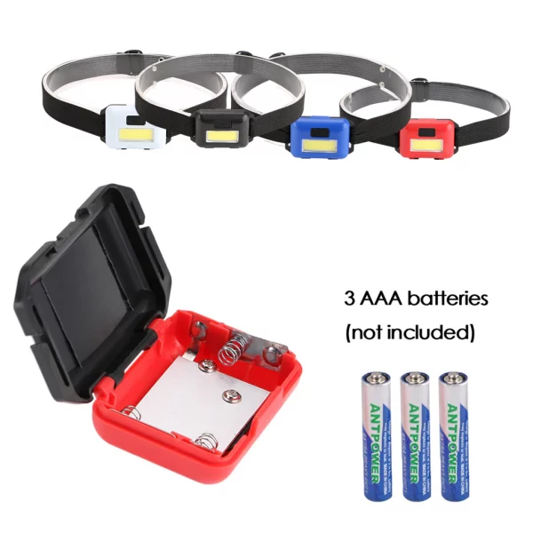 Denne supersterke hodelykten bruker COB LED-lys og kan gi en bred lyskjegle på 160º i stedet for å bare lyse opp et lite område foran deg. Vår hodelykt har IPX4-vanntetthetsgrad. Det høykvalitets ABS-skallet og vanntette bryteren er mer forseglede og lekkasjesikre, og kan trygt brukes på regnværsdager. Den drives av vanlige AAA-batterier som kan lades opp ved behov. Alternativt kan du ha med ekstra batterier til å bytte når batteriene begynner å bli tomme.