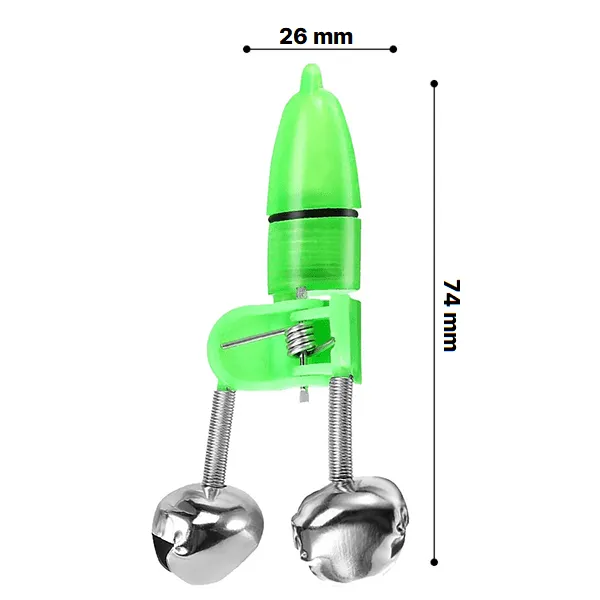 Threo fiskeredskap klipses på fiskestangen din og varsler deg med lys og doble bjeller når en fisk biter. Den er spesielt designet for nattfiske og har LED-lys. Den justerbare sensitiviteten oppdager ulike nivåer av fiskebitt.
