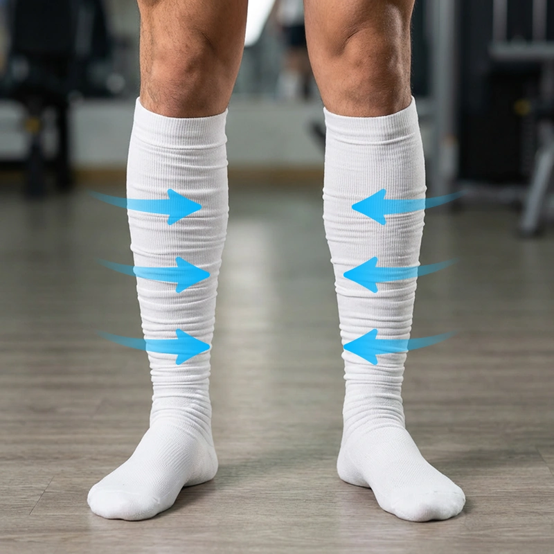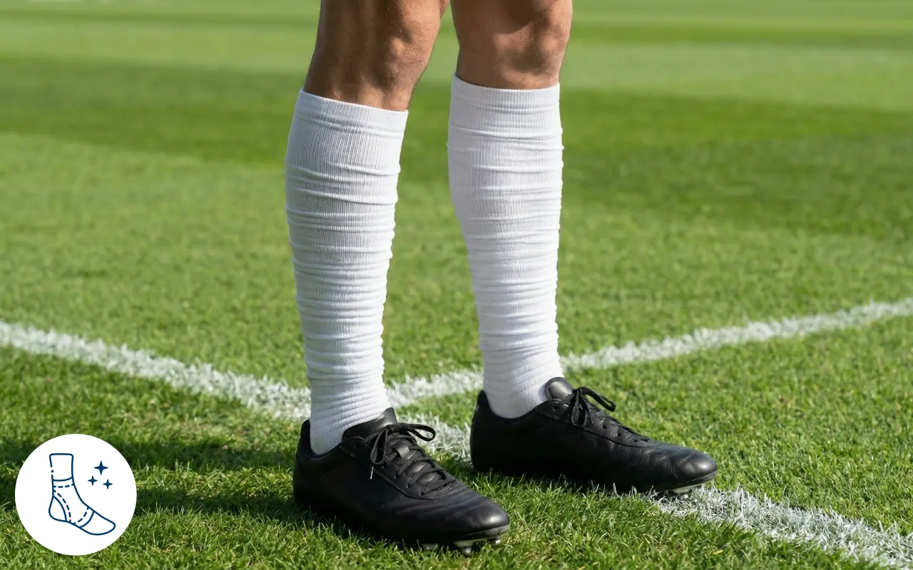 Kjøpte disse lange sokkene til fotball i helgene, og de er fantastiske. Føttene mine holder seg tørre, de sitter tett rundt anklene, og jeg tenker ikke lenger på blemmer.