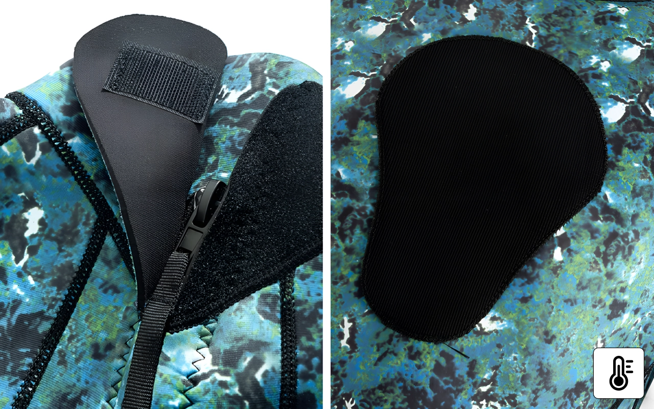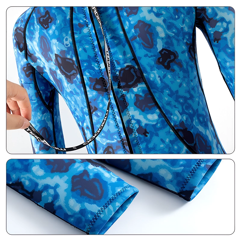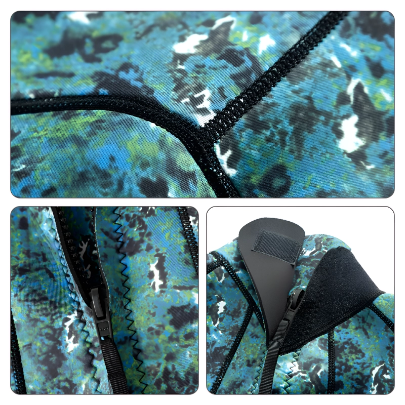 Kamuflasjedesign skjuler deg for sjødyr og farer. Solid konstruksjon beskytter huden mot stikk, skrubbsår og skarpe gjenstander.