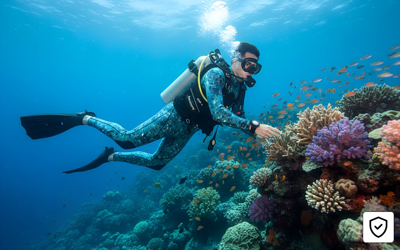 Var ute på en lang dykketur, følte meg varm hele tiden. Kamoen gjorde meg mindre synlig under vann, fanget flere fisk enn vanlig.