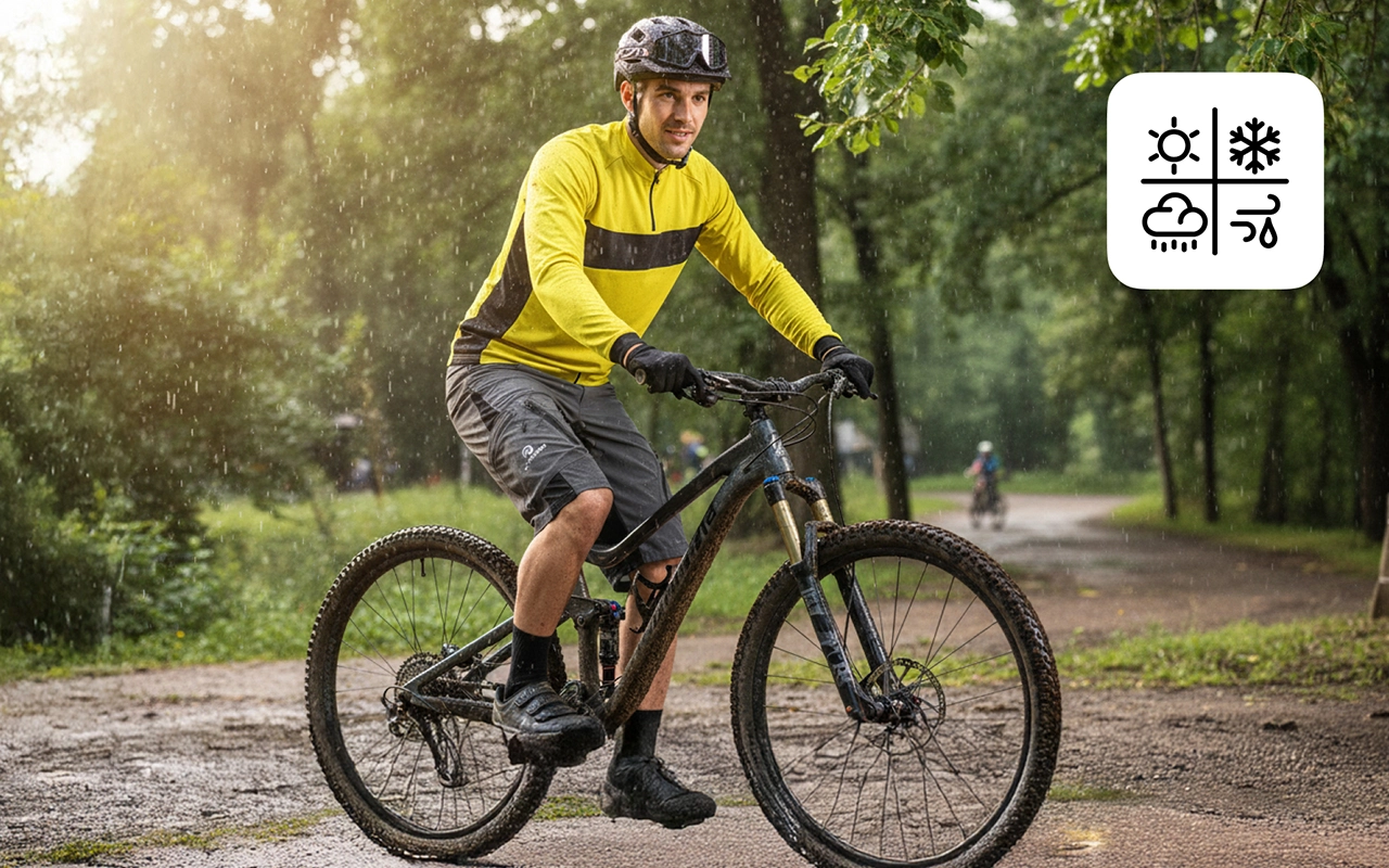Sykling er så mye bedre fordi shortsen min aldri blir gjennomvåt i regnet. Jeg bare tørker dem av og fortsetter. Elsker det!