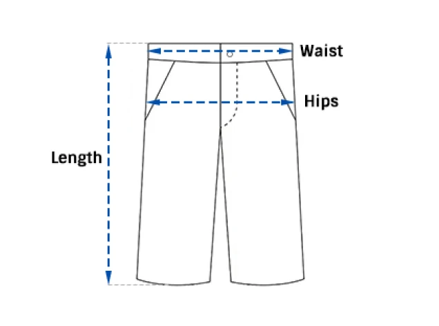 | SIZE | LENGTH | WAIST | HIPS | |||