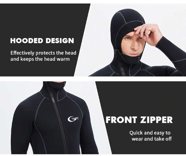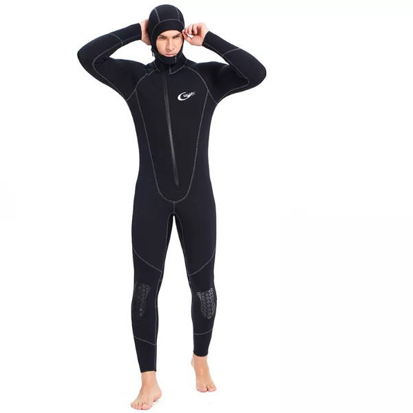 Godt kvalitetsmateriale, har aldri følt meg så varm i kaldt vann. Elsker virkelig hetten—gir flott beskyttelse!