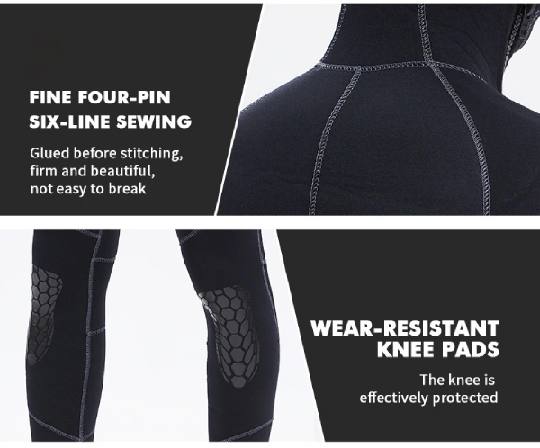 Slitesterke knelapper beskytter knærne effektivt mot skader. En annen fordel med denne wetsuiten er at den beskytter deg mot solbrenthet og riper i huden fra marint liv i dypet. Du unngår hudskader forårsaket av vannforurensning.