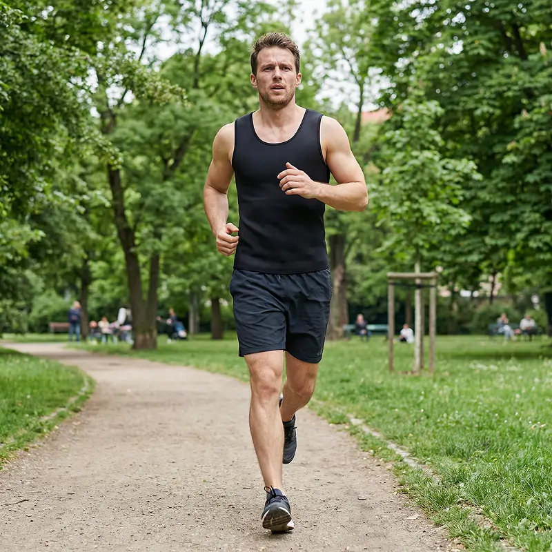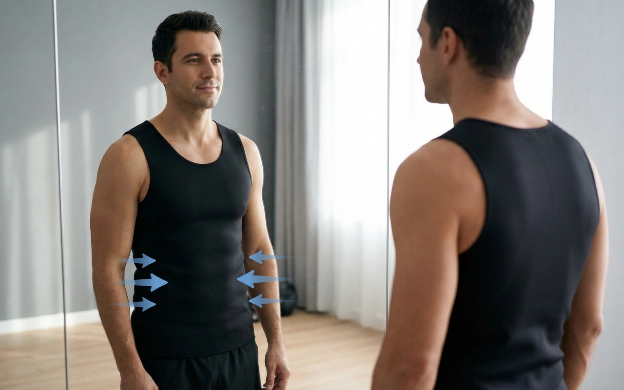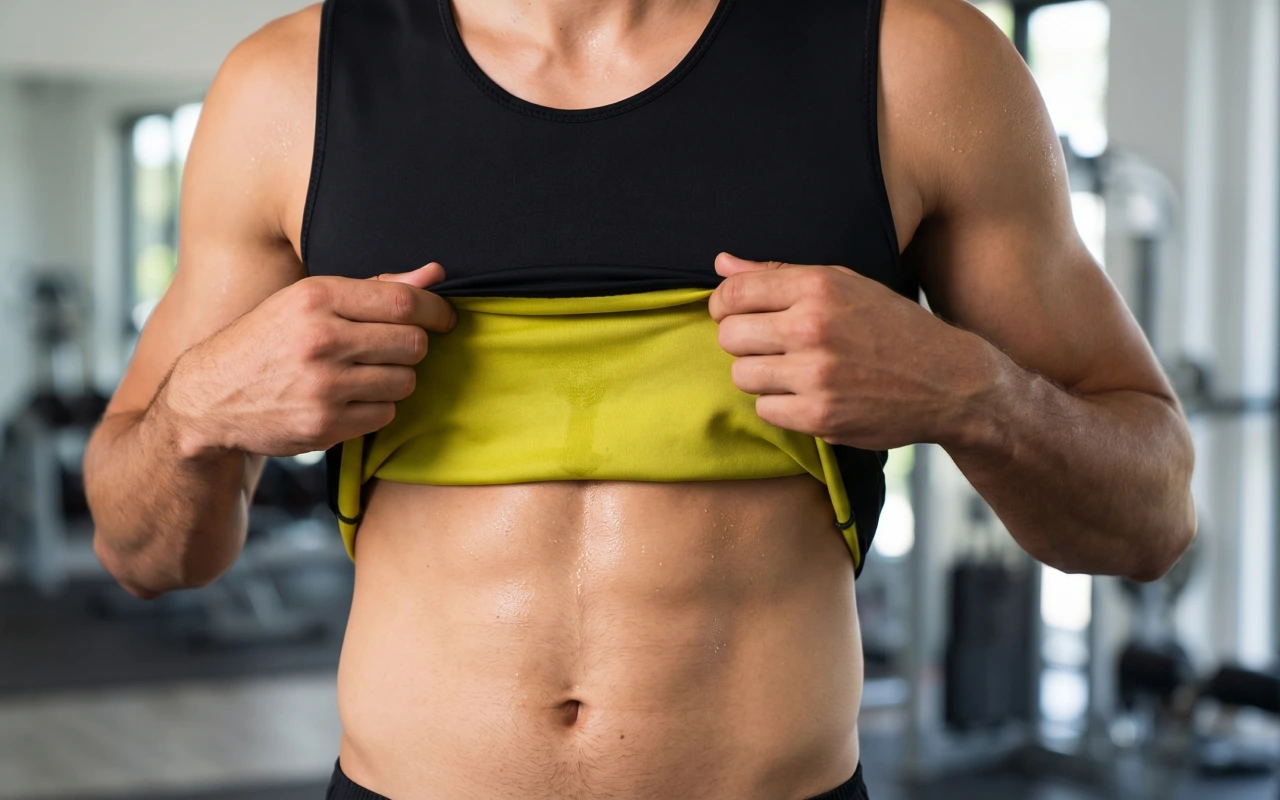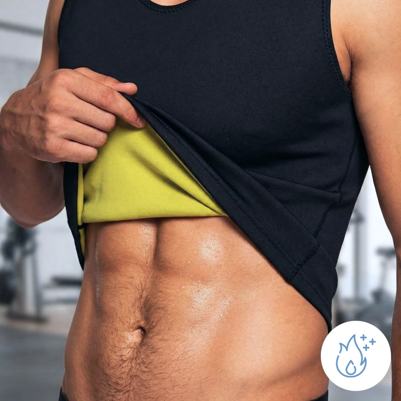 Kjøpte denne sauna-vesten etter at jeansen ble trang. Den øker virkelig svetten på turer, og magen ser flatere ut under skjorter med en gang.