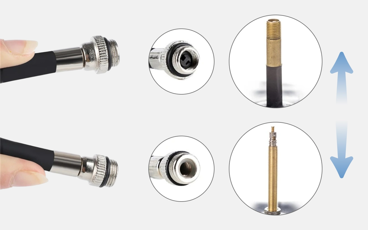 Bytt sømløst mellom Schrader- og Presta-ventiler på enhver tur. Ingen ekstra adaptere er nødvendig for dine sykkelbehov.