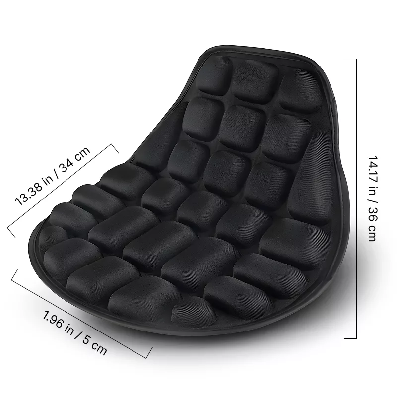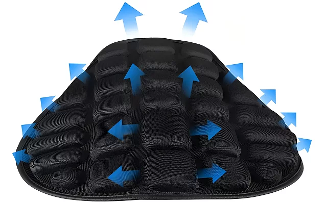 Vår motorsykkelpute gir overlegen støtdemping, og minimerer virkningen av ujevnheter i veien. Den fordeler kroppsvekten jevnt og reduserer belastningen på hofter og korsrygg. Den beholder formen selv etter lange turer og hyppig bruk.