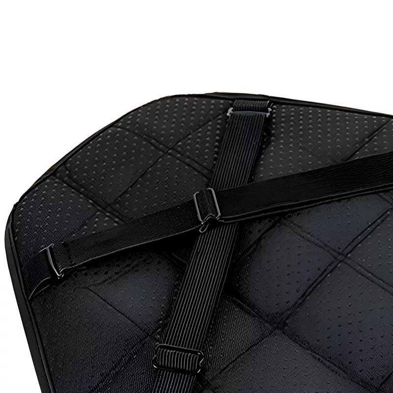 Doble krysstropper og en gummiert underside holder puten på plass. Den vil ikke skli under skarpe svinger eller på ujevnt terreng. Nyt jevnere turer uten stadig justering.