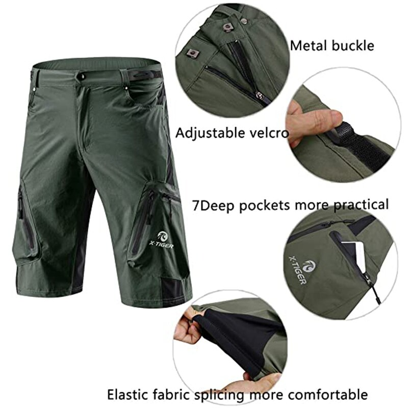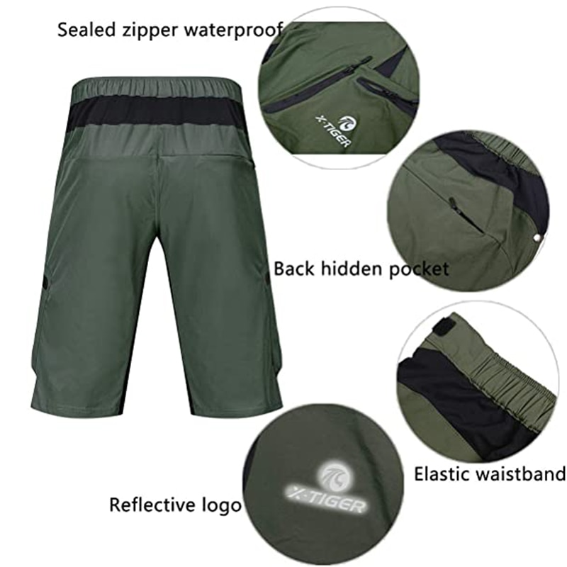 Med et design med flere lommer kan disse polstrede sykkelshortsene for menn enkelt oppbevare smarttelefon, nøkler, snacks og andre ting. Sykkelshortsene har også en reflekterende logo som sikrer trygg sykling om natten. Du kan også velge modellen som leveres med undertøysshorts med gel-polstret pute. Den gir god beskyttelse og hjelper til med å unngå skader forårsaket av sykling.